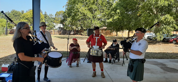 BCSS Pipes and Drums playing; Tom, Jeff, Karen and Don.
