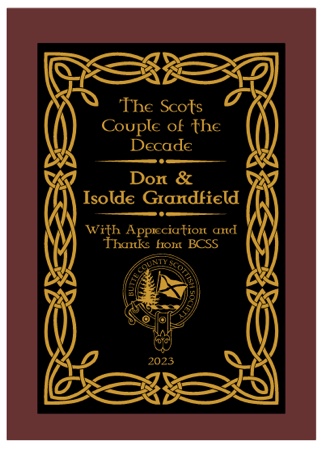 A special award. The Scots Couple of the Decade, was given to our past President, Don Grandfield, and his wife Isolde for their years of support and participation in the organization.